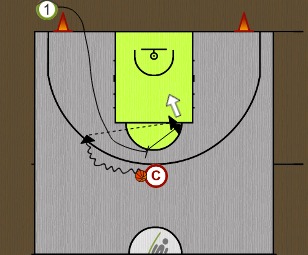 26.Vaja: Odkrivanje na mestu nizkega posta. Žogo ulovimo obrnjeni s hrbtom proti košu in izvajamo met po pivotiranju proti obroču ali stran od obroča. Tečemo na mesto visokega posta. Žogo ulovimo obrnjeni z bokom proti obroču, met pa izvajamo po pivotiranju proti obroču ali stran od njega.
